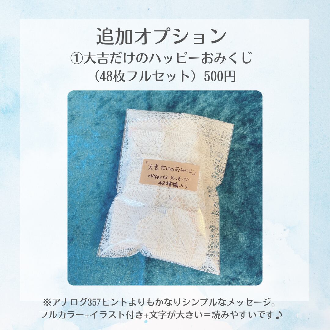 アナログ357ヒントと少しテイストの違う、シンプルでハッピーな48通りのおみくじの詰め合わせです。